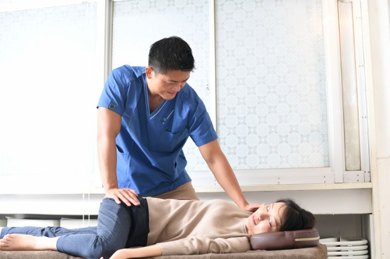 効果的な施術を行うため、緊張をほぐしたうえで丁寧にアプローチしていきます。施術中は、痛みを感じないように適度な力加減で行いますが、痛みを感じる際や何か気になることがあれば、遠慮なくスタッフに伝えてください。